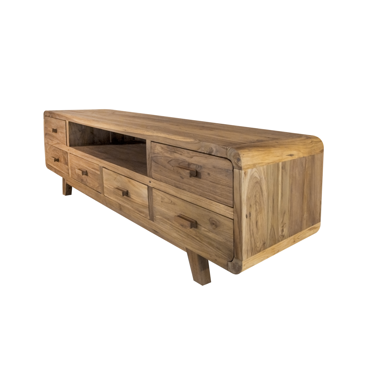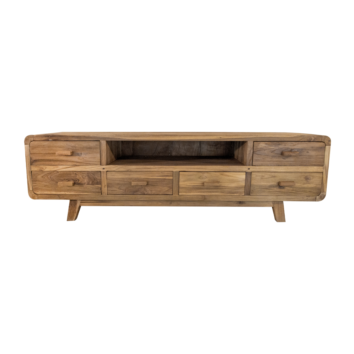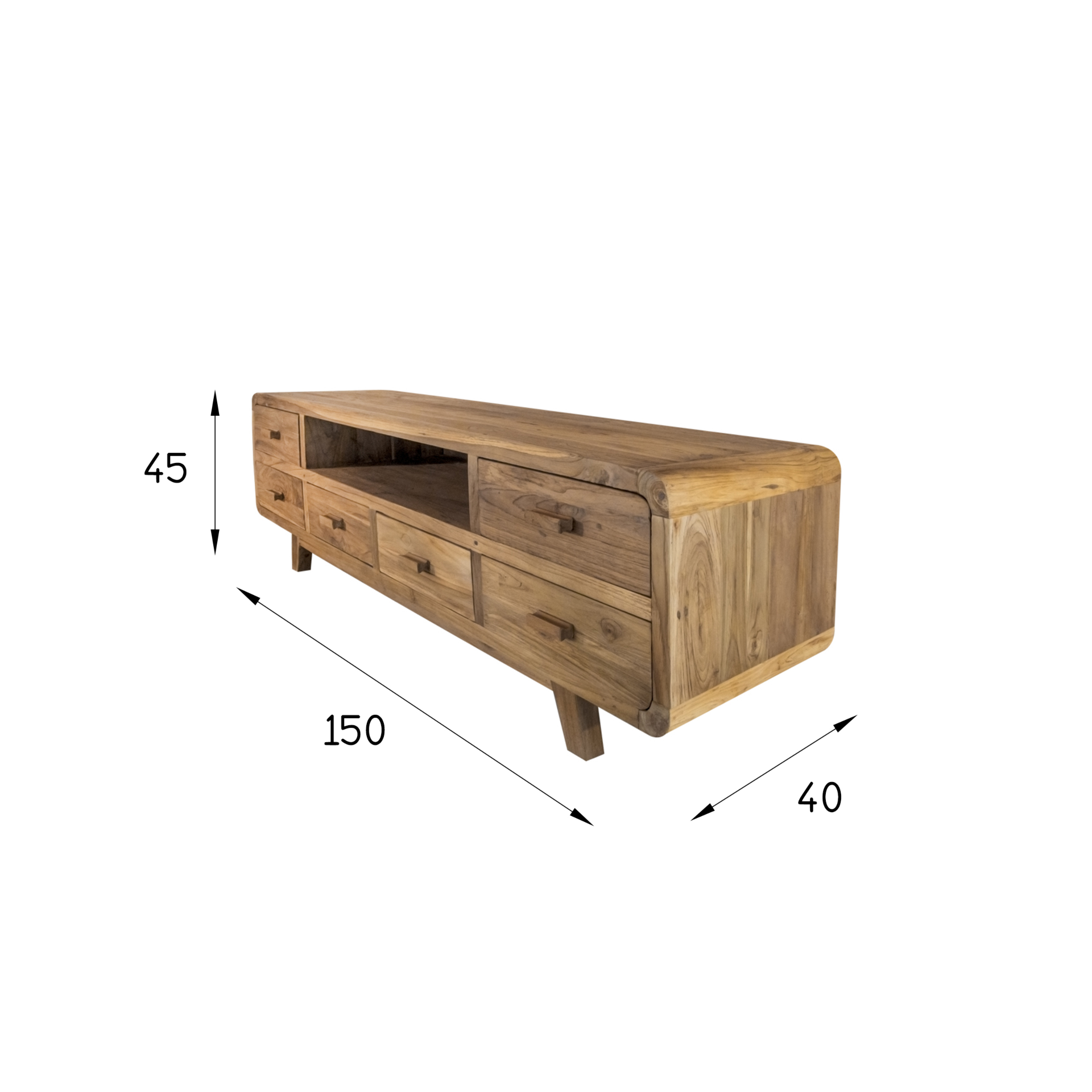 Bandung TV Sehpası, teak ağacının doğal dokusunu modern çizgilerle harmanlayarak şık ve fonksiyonel bir televizyon ünitesi sunar. Geniş depolama alanı, zarif detaylar ve sağlam yapısı ile her tür yaşam alanına mükemmel uyum sağlar.