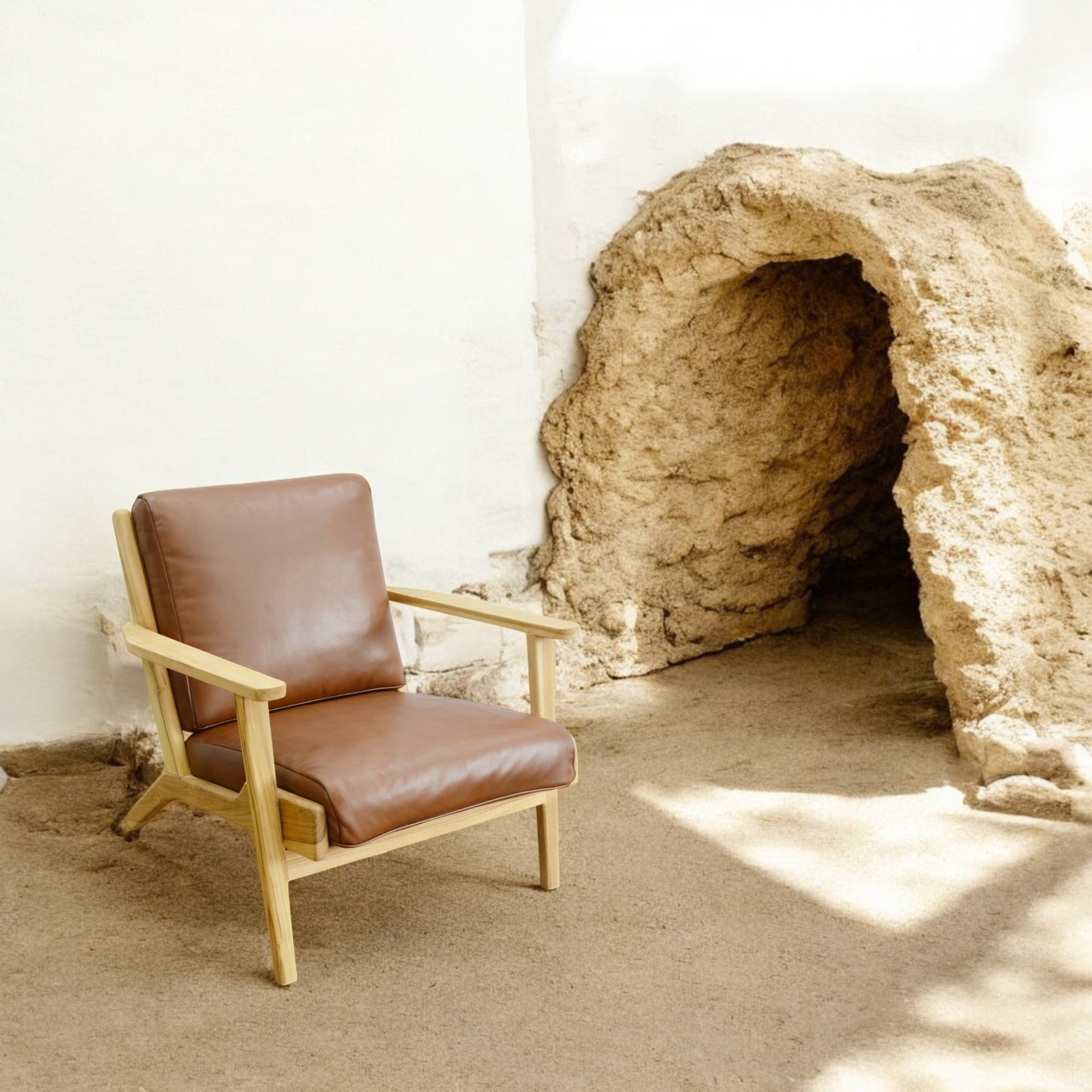 Teak ağacının dayanıklılığı ile derinin zarafetini buluşturan bu berjer, konfor ve şıklığı bir arada sunar. 40 cm oturum yüksekliğiyle rahat bir kullanım sağlar. Doğal malzemeleri ve zamansız tasarımıyla her mekâna uyum sağlar.