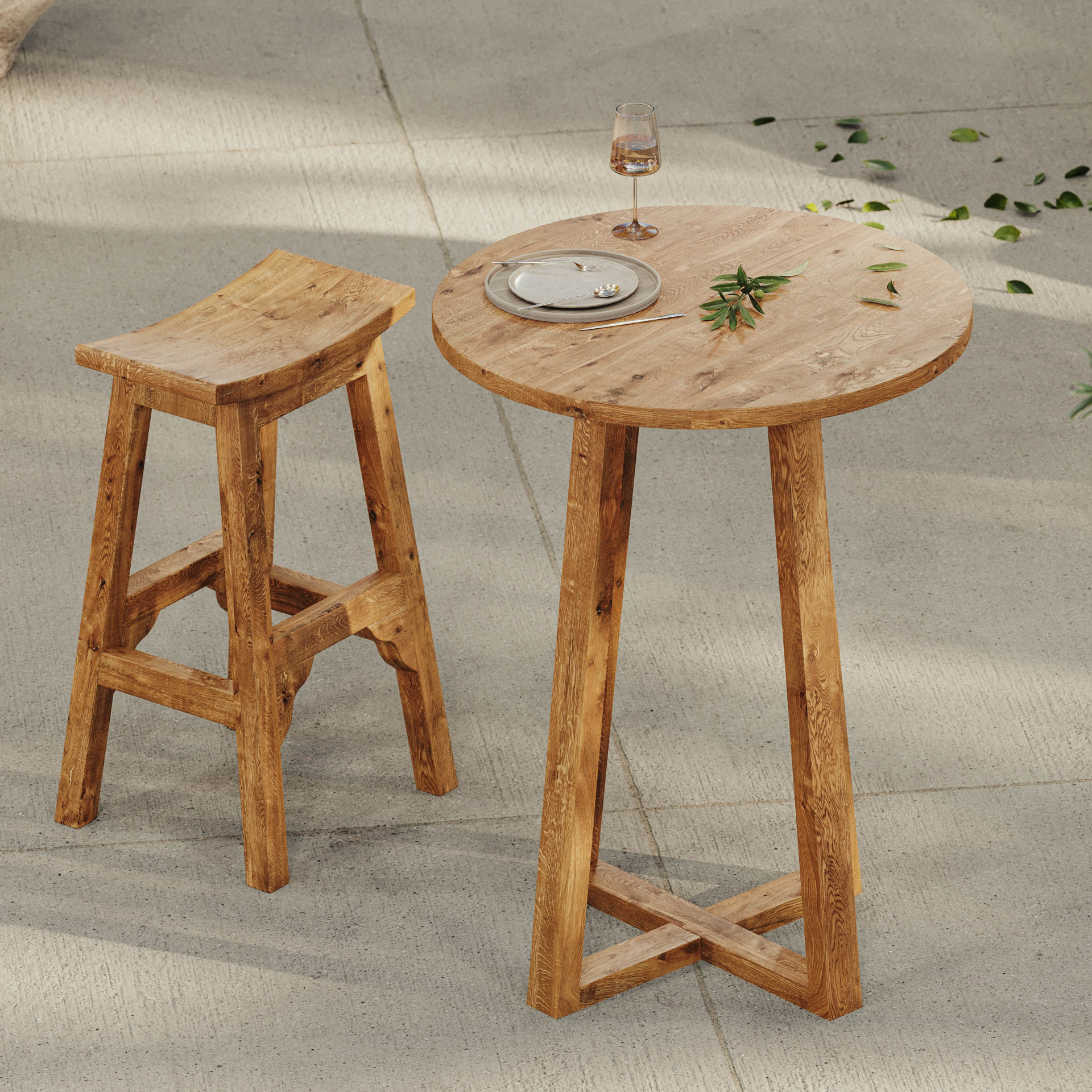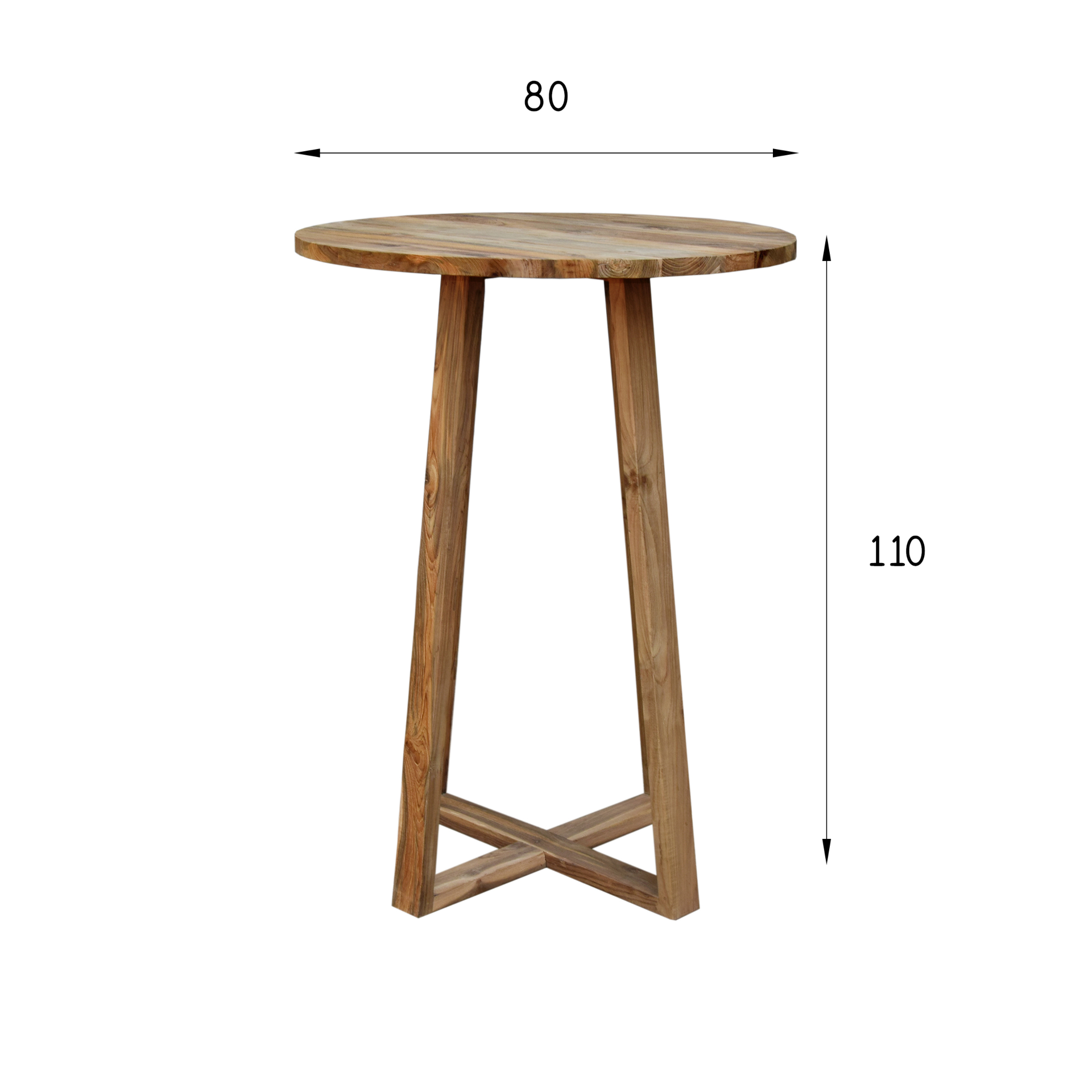 Matera Bistro Masa, teak malzemenin doğal dokusuyla tasarlanmış, 80 cm çapında ve 110 cm yüksekliğinde yuvarlak bir masadır. Sade ve şık formu, davetlerinize estetik bir dokunuş katar. Endonezya menşeilidir