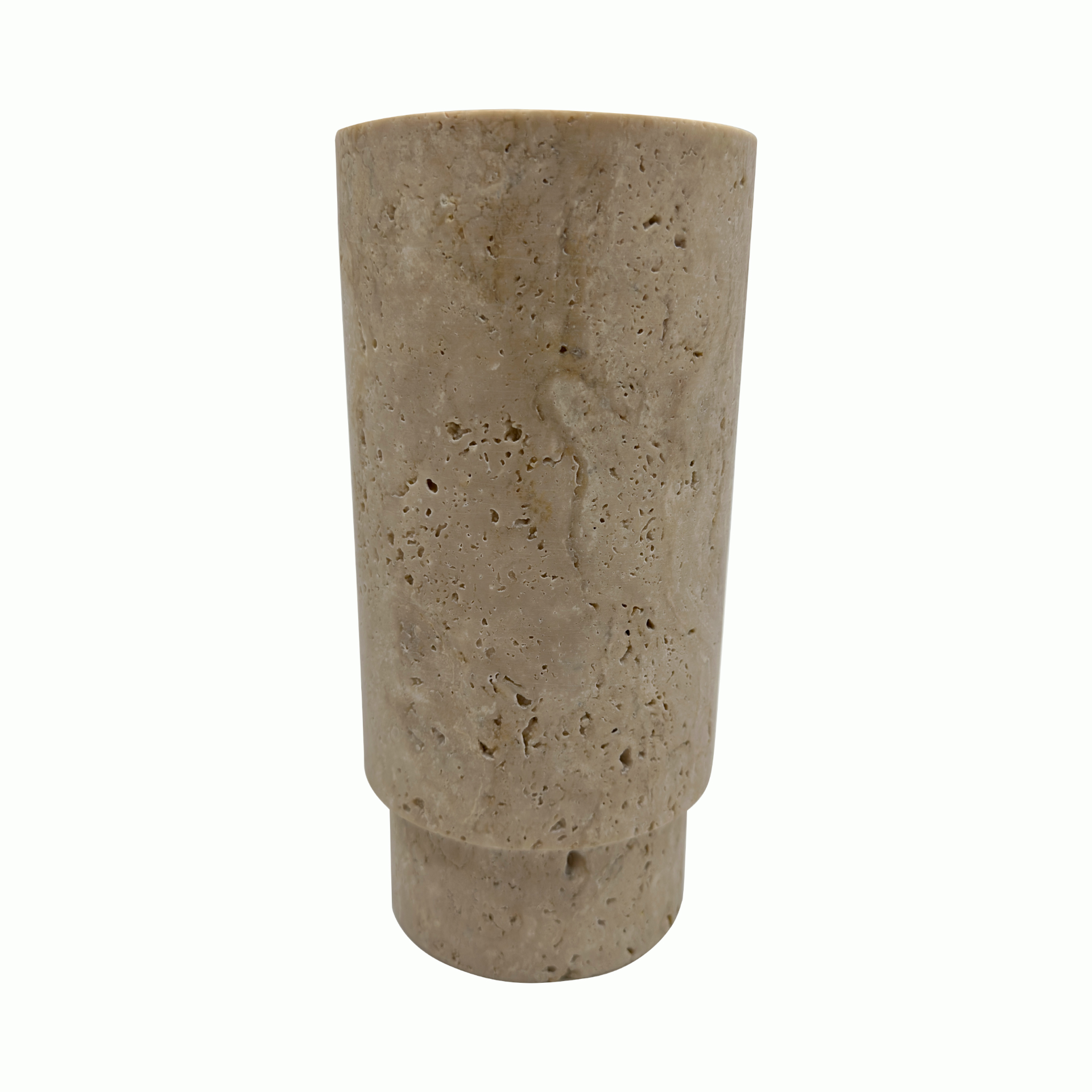 Moon Vazo, traverten malzemeden üretilmiş, 12 cm genişliğinde ve 25 cm yüksekliğinde şık bir vazodur. Bu doğal taş vazo, ev dekorasyonunuza zarif bir dokunuş katmak üzere tasarlanmıştır.
