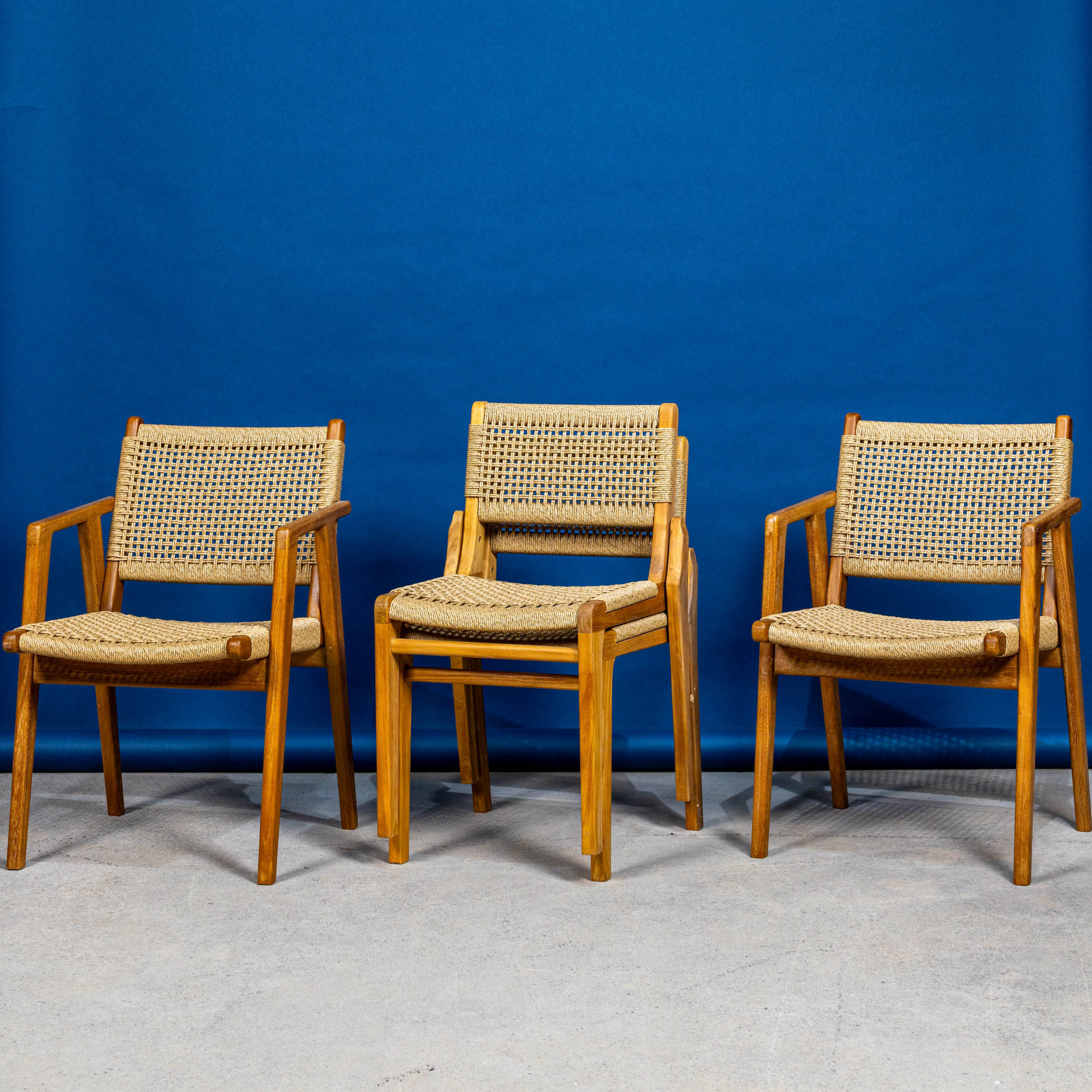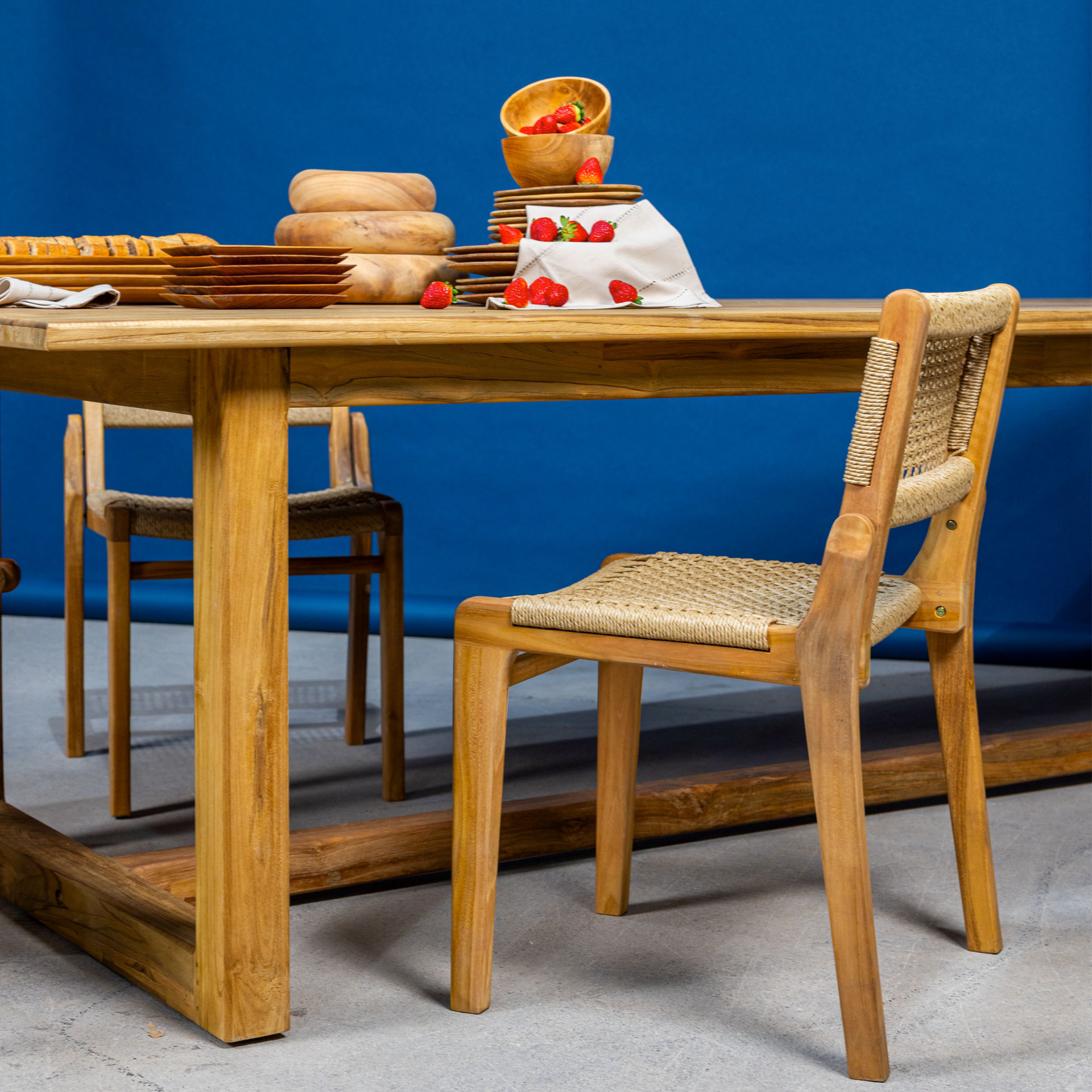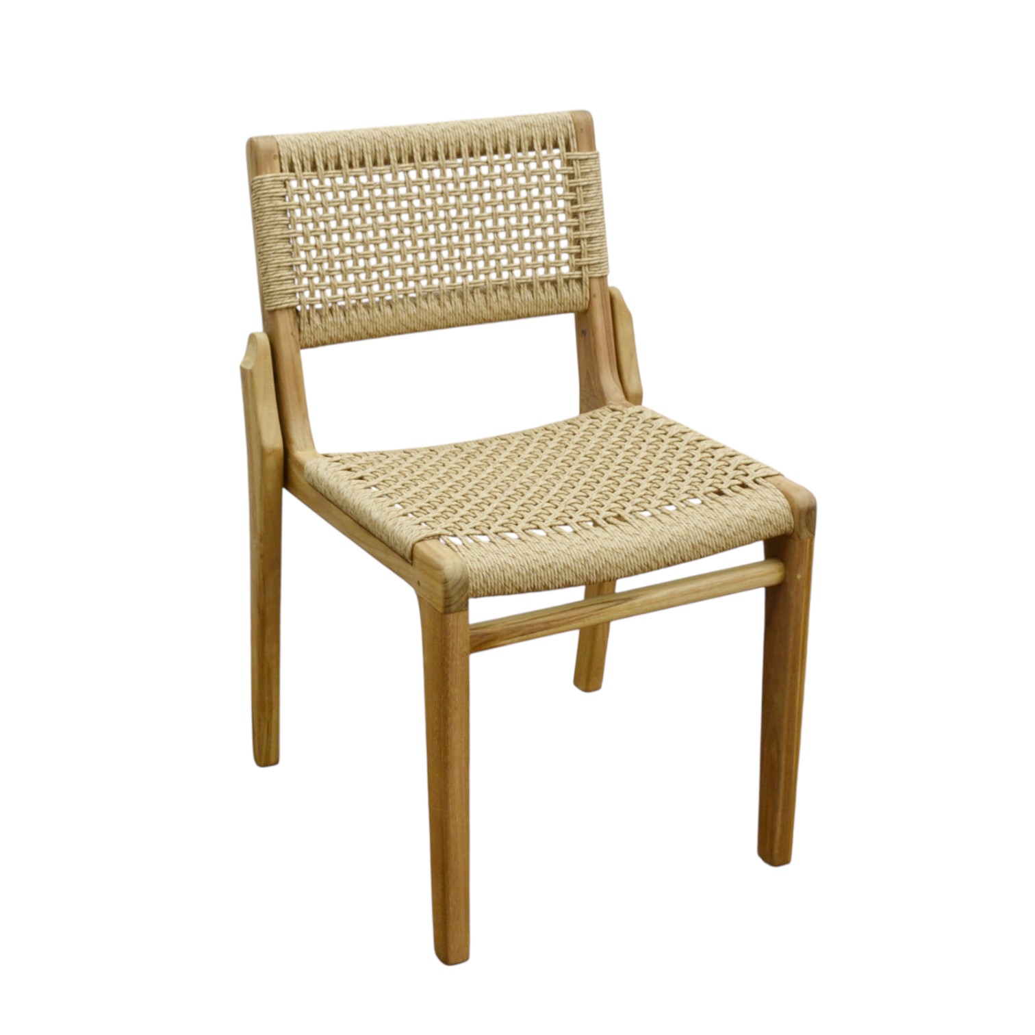 Endonezya menşeili bu sandalye, dayanıklı teak iskeleti ve konfor sağlayan sentetik oturumu ile hem şık hem de uzun ömürlü bir kullanım sunar. Doğal görünümü sayesinde yaşam alanlarına sıcak ve modern bir dokunuş katar.