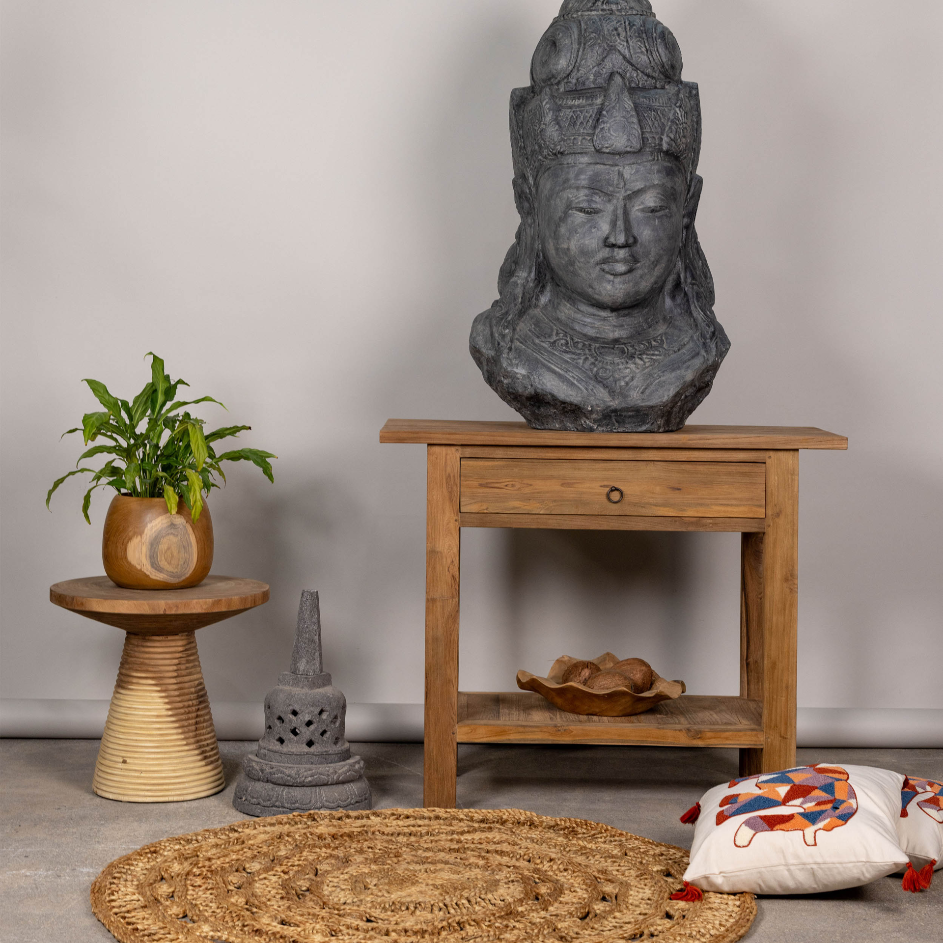 Hindistan kökenli bilgelik, sanat ve öğrenme tanrıçasını temsil eden Saraswati Heykel, zarif detay işçiliğiyle öne çıkar. Mekâna kültürel ve ruhsal bir atmosfer katarak dekorasyonun odak noktası olur.