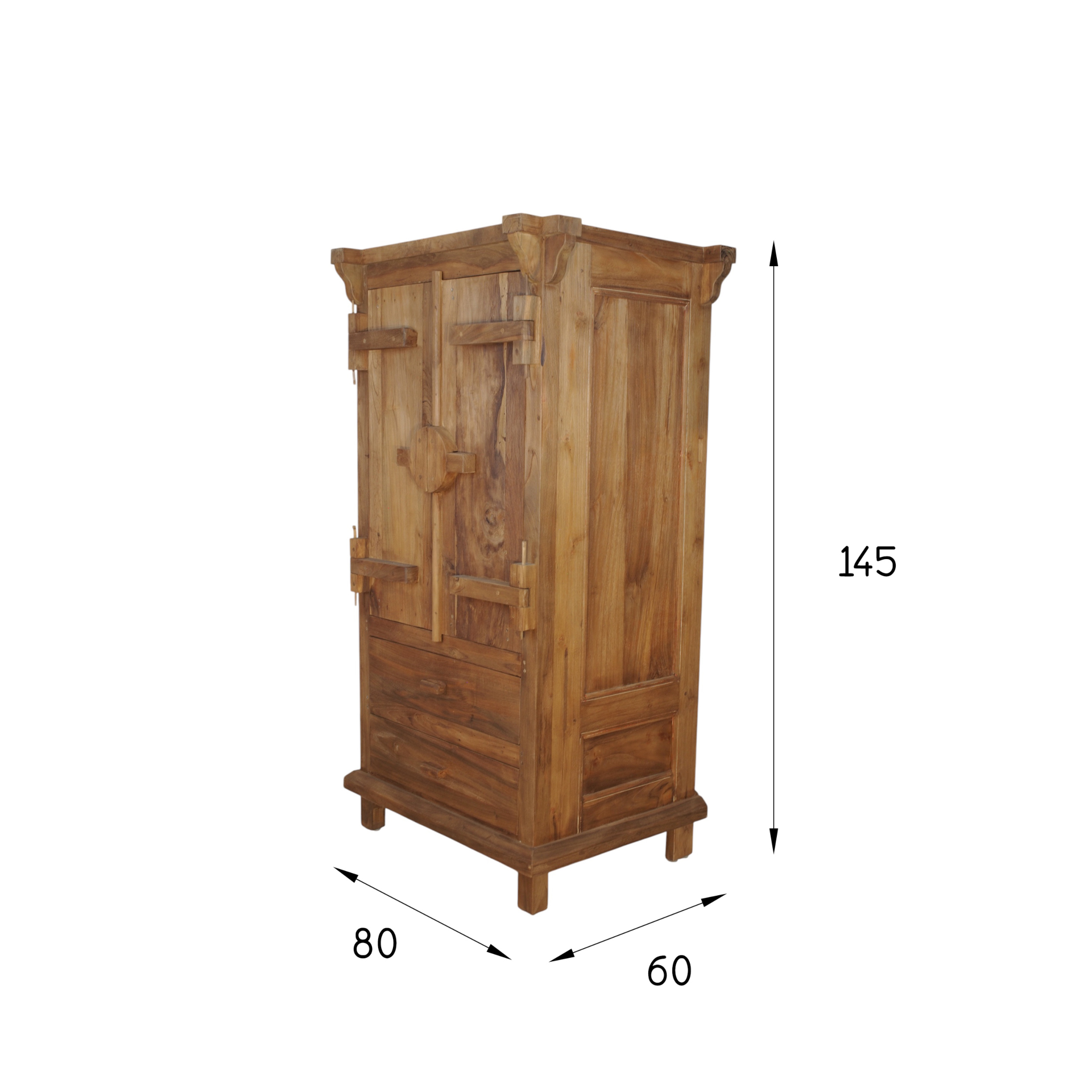 Teak ağacının dayanıklılığı ve doğal güzelliği ile üretilen bu 2 kapaklı, 2 çekmeceli dolap, yaşam alanınıza sofistike bir dokunuş katıyor. Fonksiyonel tasarımı sayesinde eşyalarınızı düzenli bir şekilde saklarken, zamansız görünümü her tarzda iç mekana kusursuz bir uyum sağlar.